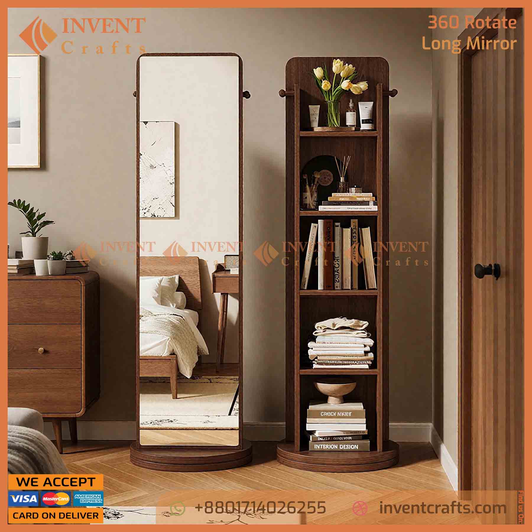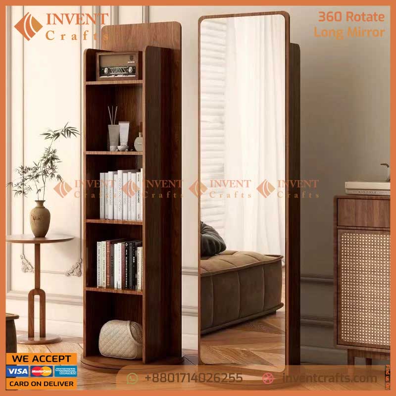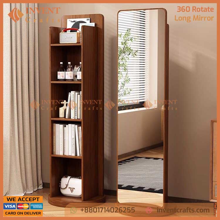 আপনার ঘরের সৌন্দর্য বাড়াতে এবং জায়গা বাঁচাতে নিয়ে নিন এই ৩৬০° রোটেটিং ফুল বডি মিরর। এর একদিকে রয়েছে ঝকঝকে লম্বা আয়না এবং অন্যদিকে আছে ৫টি স্টোরেজ তাক, যেখানে আপনি আপনার ব্যাগ, বই এবং প্রয়োজনীয় জিনিসপত্র গুছিয়ে রাখতে পারবেন।