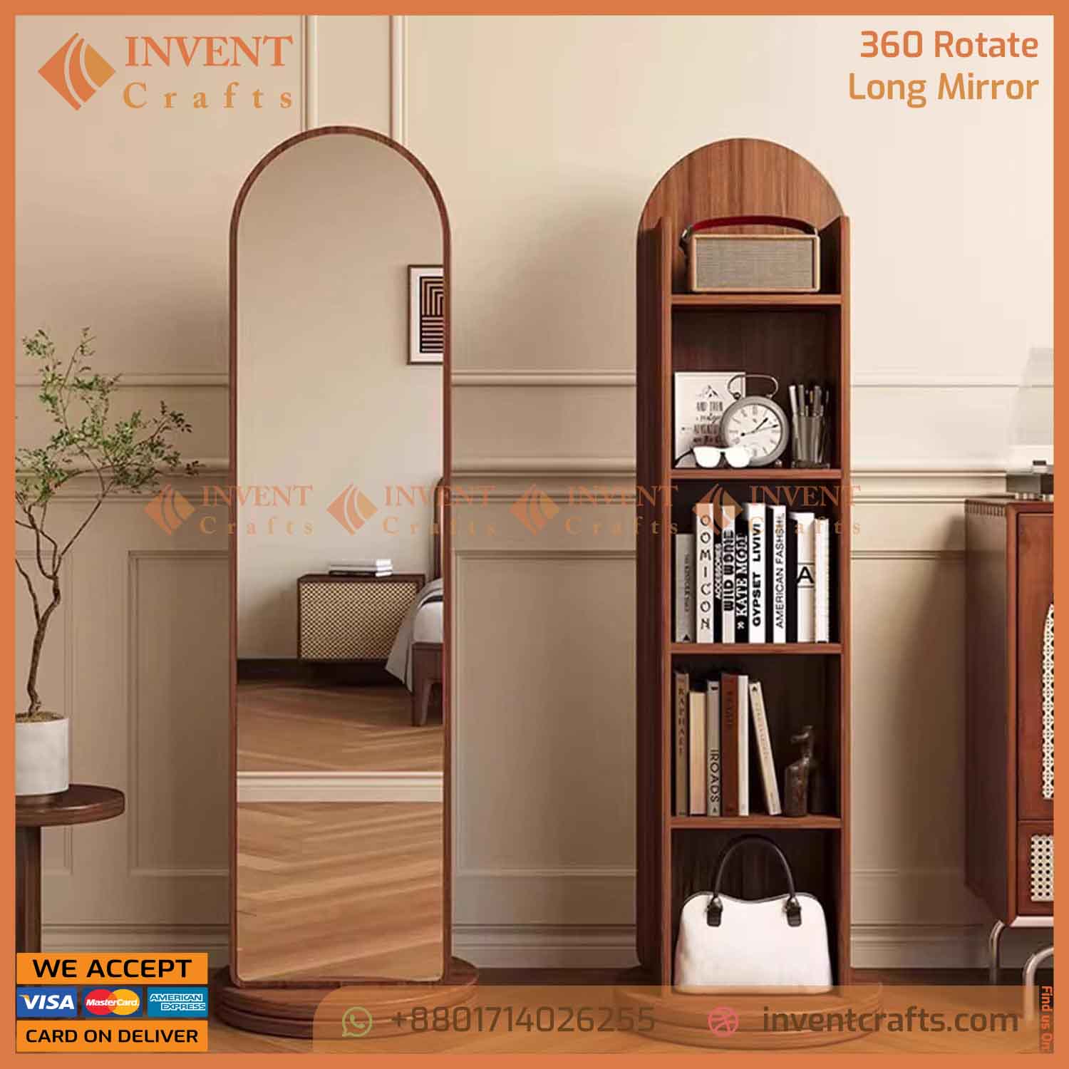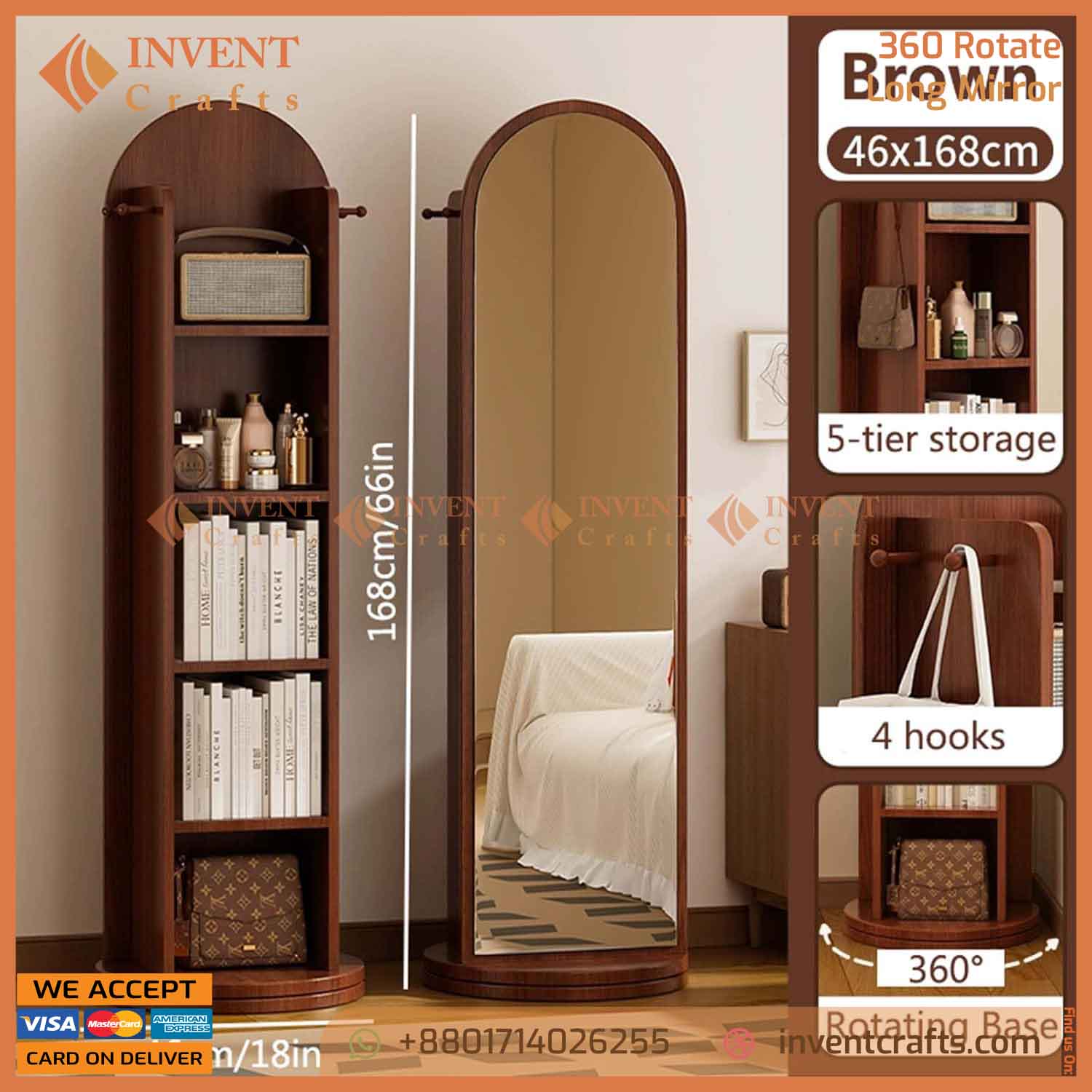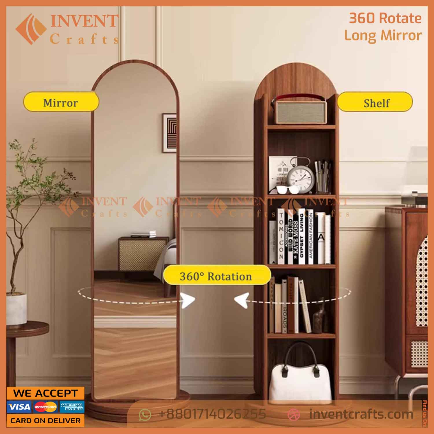 আধুনিক এবং নান্দনিক ঘর সাজাতে নিয়ে নিন আমাদের বহুমুখী ৩৬০° রোটেটিং ফুল বডি মিরর। এটি একই সাথে একটি হাই-ডেফিনিশন ড্রেসিং মিরর, স্টোরেজ শেলফ এবং ক্লথ হ্যাঙ্গার হিসেবে কাজ করে। যারা অল্প জায়গায় সর্বোচ্চ সুবিধা এবং স্মার্ট লুক খুঁজছেন, তাদের জন্য এটি একটি নিখুঁত আসবাব।