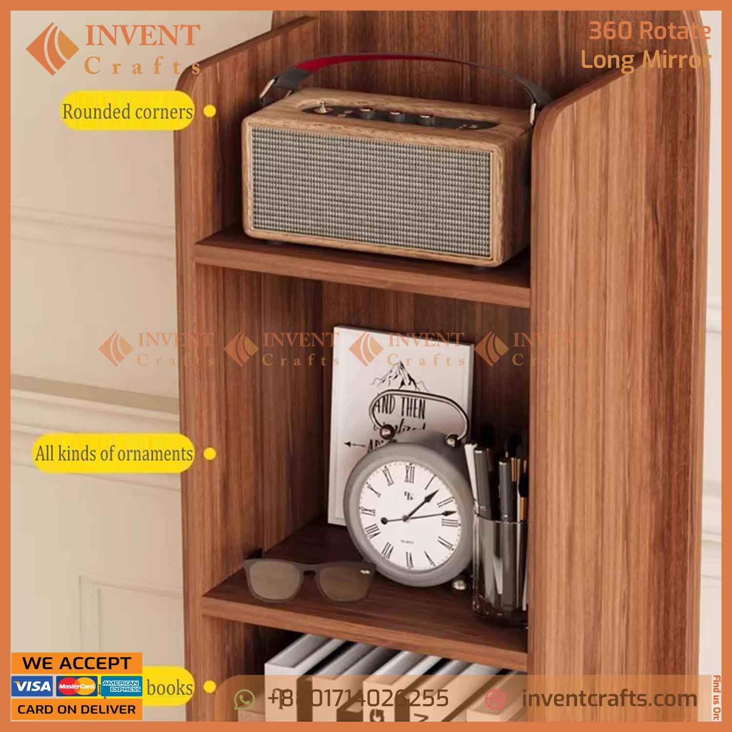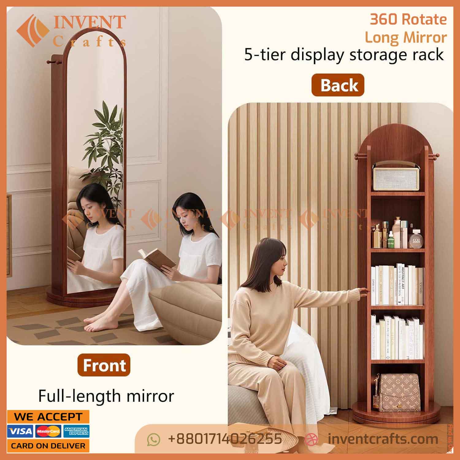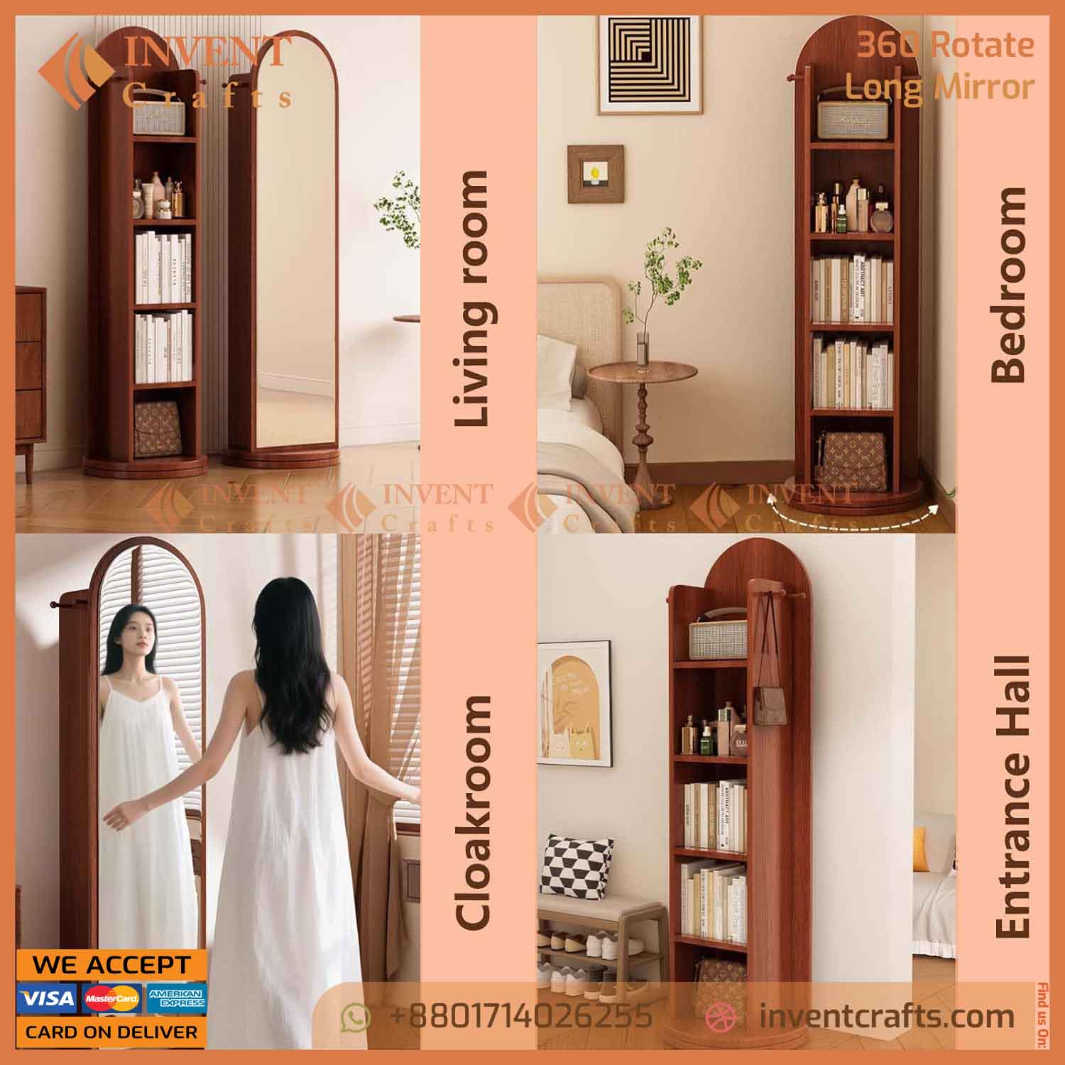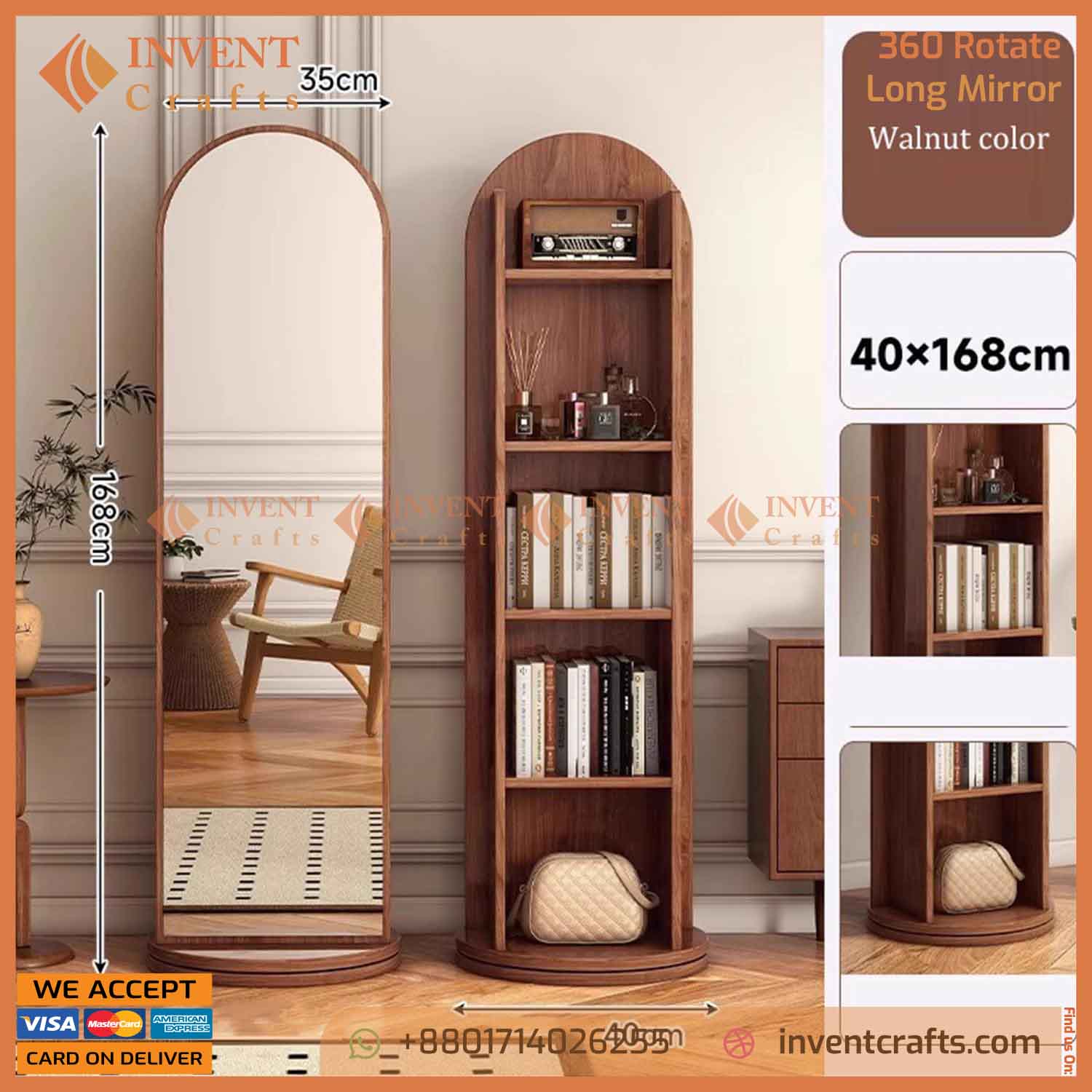 আধুনিক এবং নান্দনিক ঘর সাজাতে নিয়ে নিন আমাদের বহুমুখী ৩৬০° রোটেটিং ফুল বডি মিরর। এটি একই সাথে একটি হাই-ডেফিনিশন ড্রেসিং মিরর, স্টোরেজ শেলফ এবং ক্লথ হ্যাঙ্গার হিসেবে কাজ করে। যারা অল্প জায়গায় সর্বোচ্চ সুবিধা এবং স্মার্ট লুক খুঁজছেন, তাদের জন্য এটি একটি নিখুঁত আসবাব।