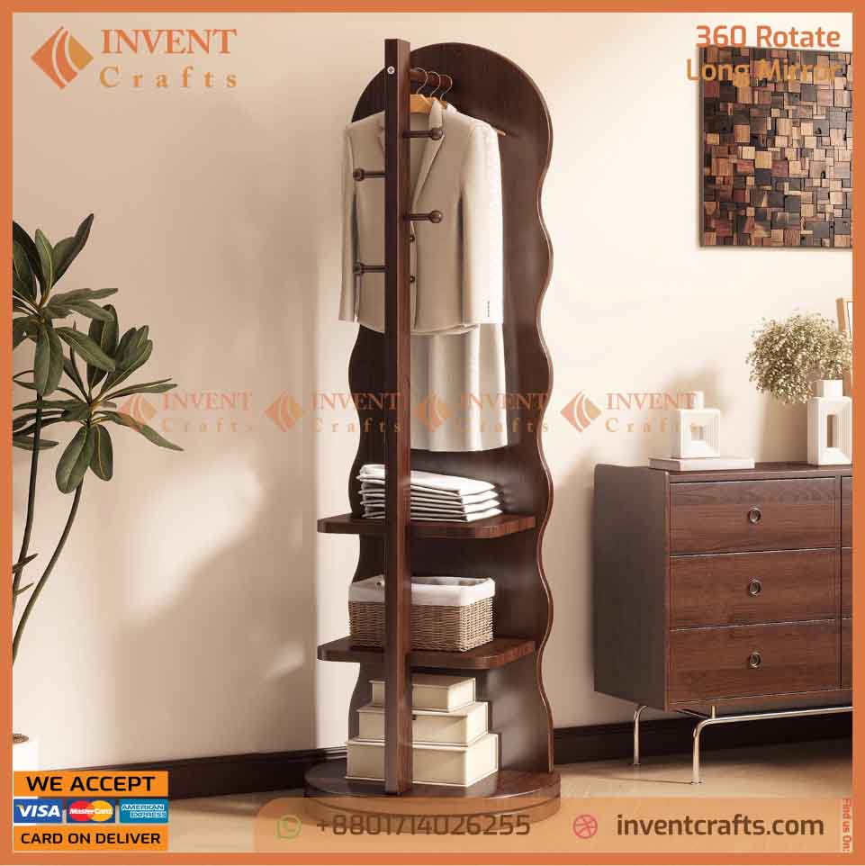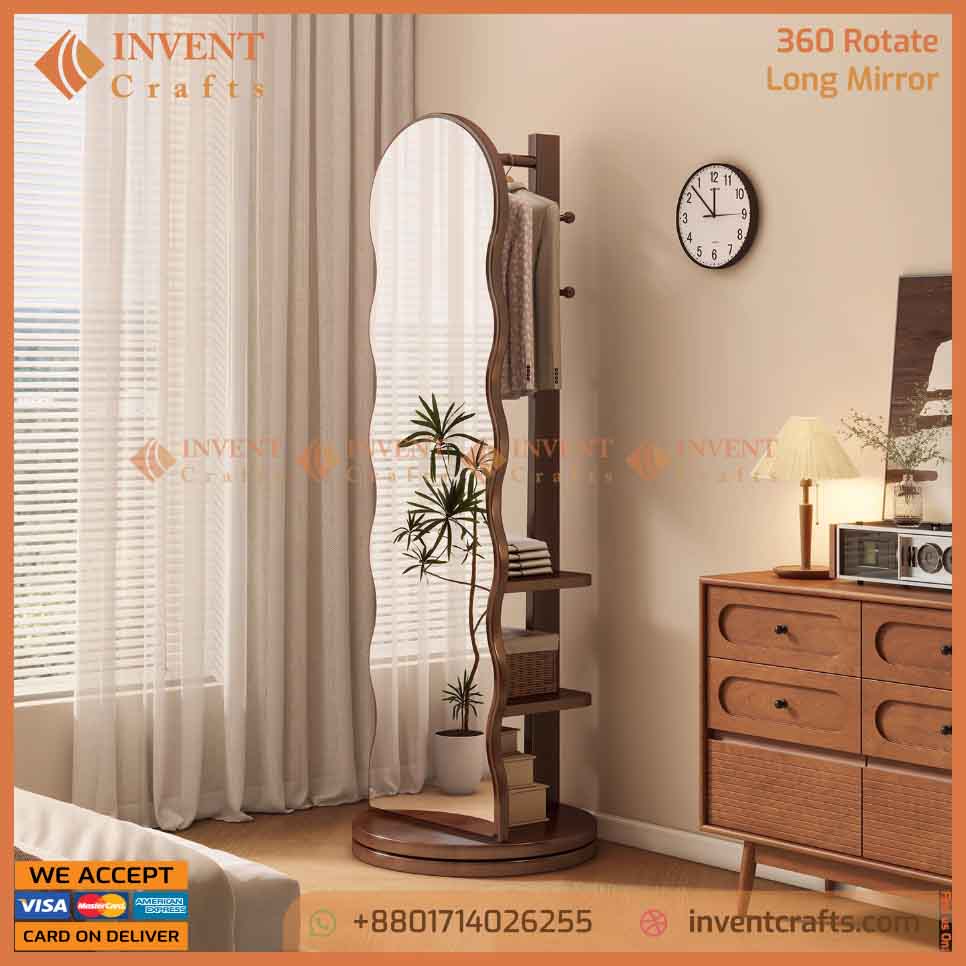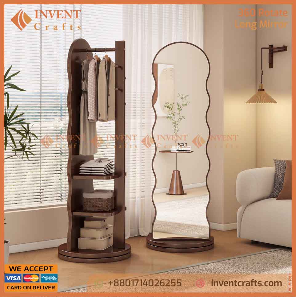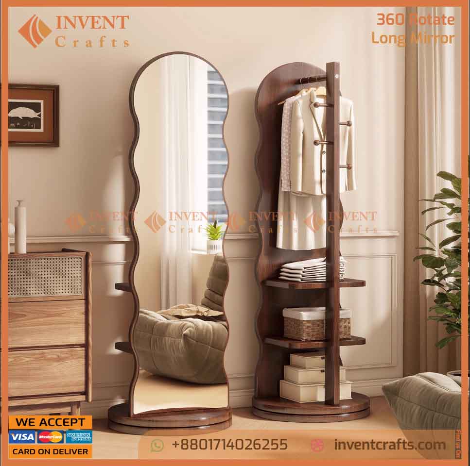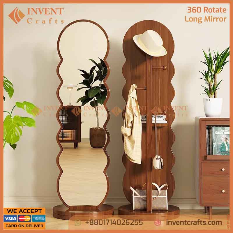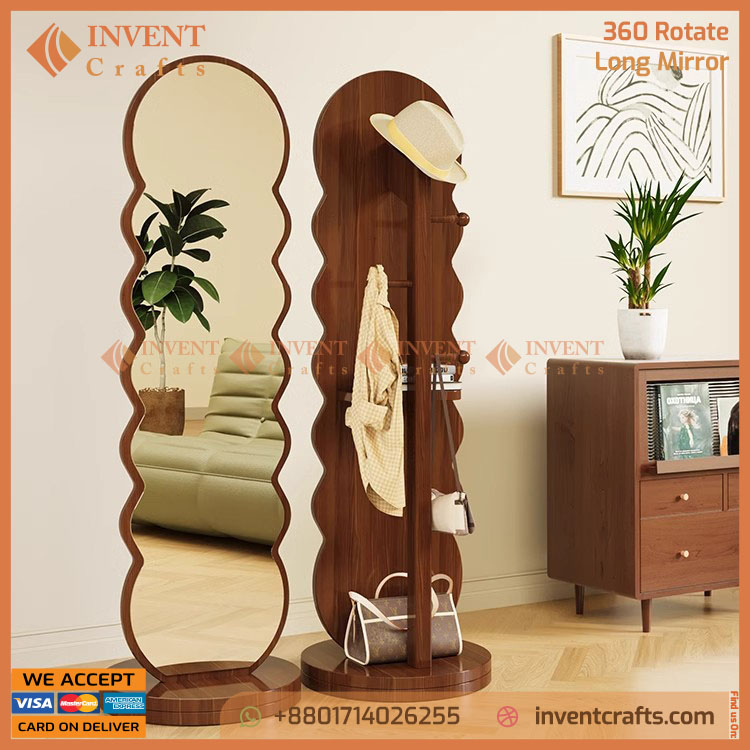 আপনার বেডরুমকে আধুনিক ও সুসজ্জিত করতে নিয়ে নিন এই ৩৬০° রোটেটিং ফুল বডি মিরর। এটি একই সাথে একটি হাই-ডেফিনিশন ড্রেসিং মিরর এবং একটি মাল্টিফাংশনাল স্টোরেজ ইউনিট। যারা অল্প জায়গায় জামাকাপড়, ব্যাগ এবং কসমেটিকস গুছিয়ে রাখতে চান, তাদের জন্য এটি একটি স্মার্ট ও নান্দনিক সমাধান।