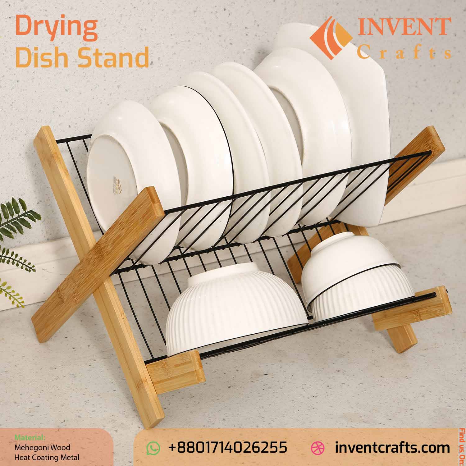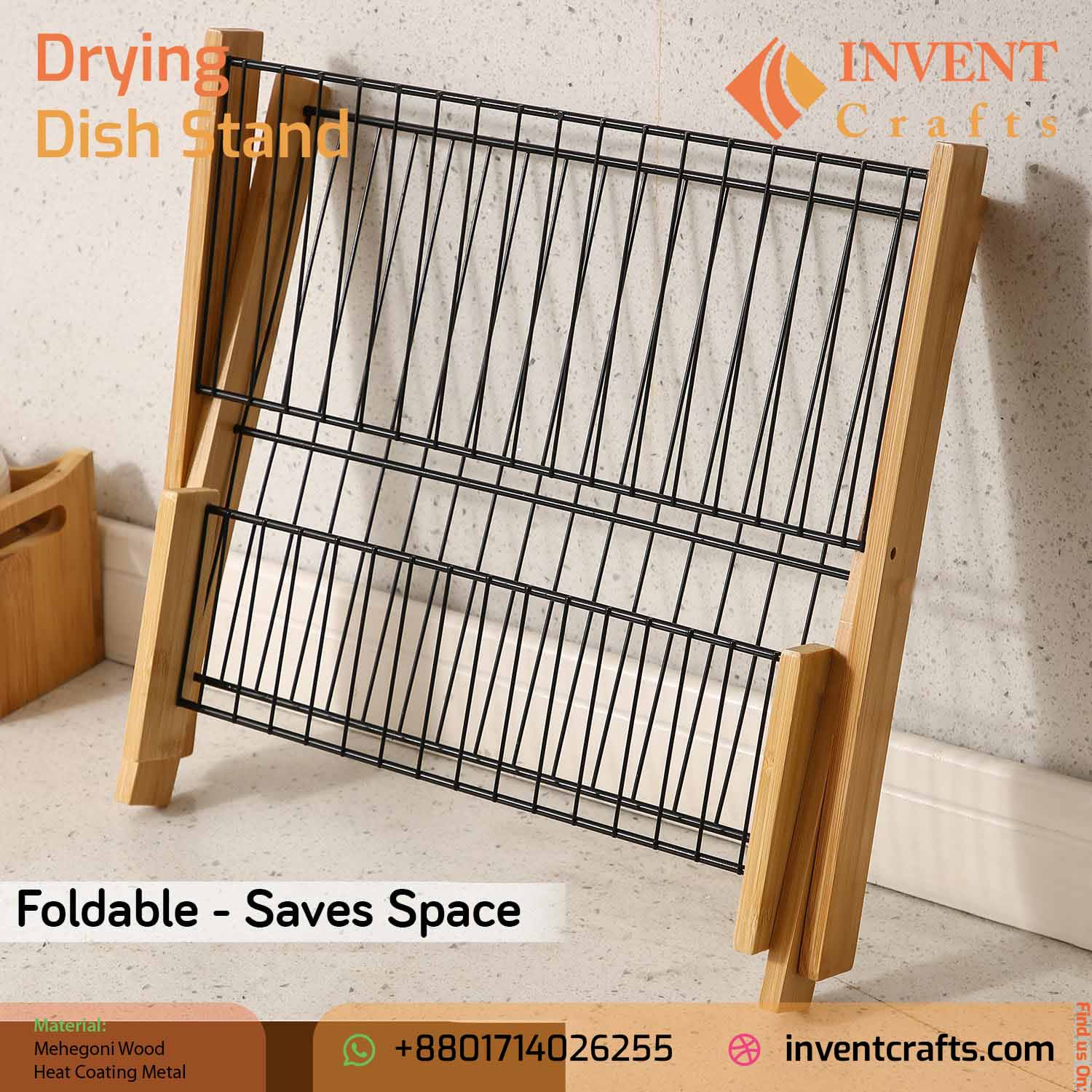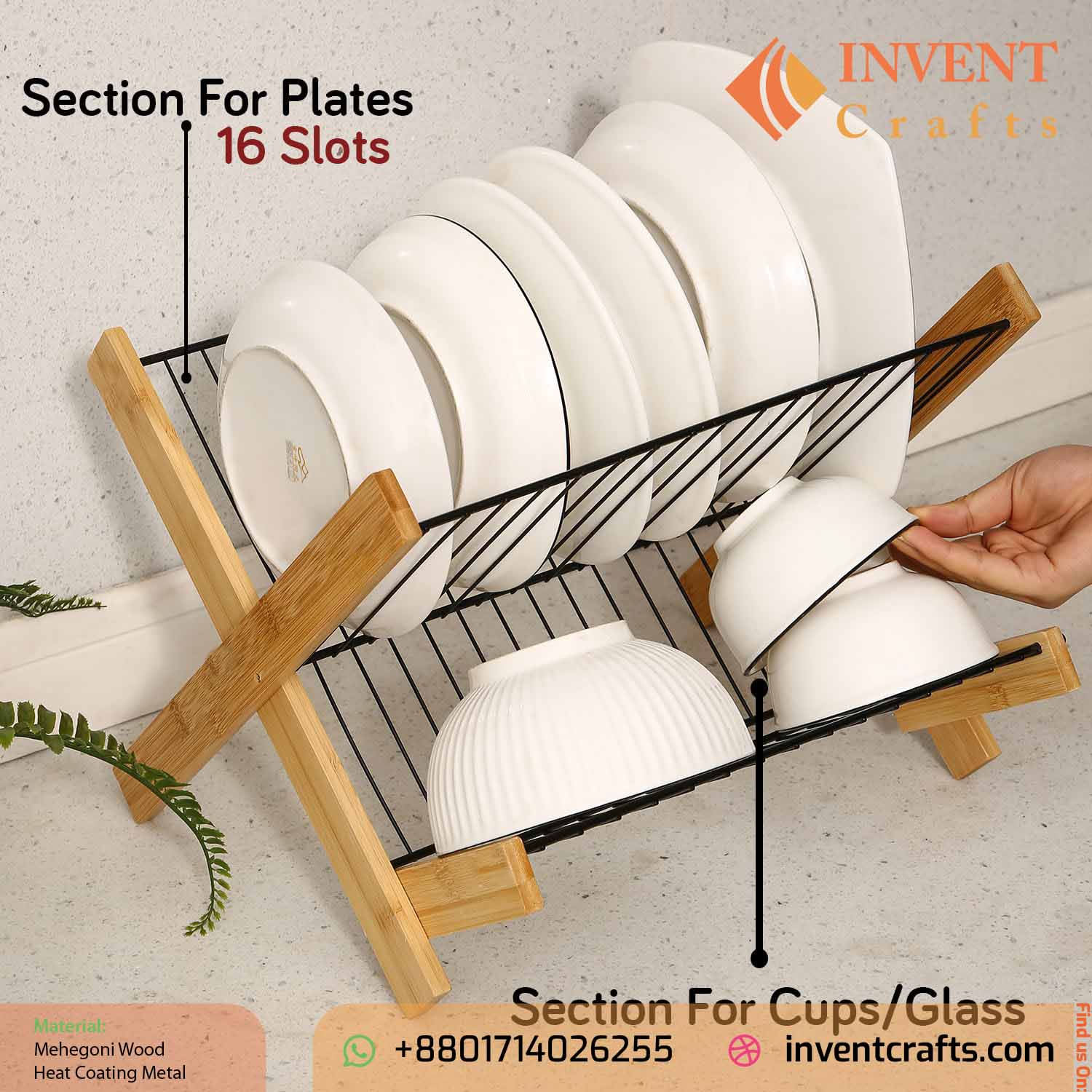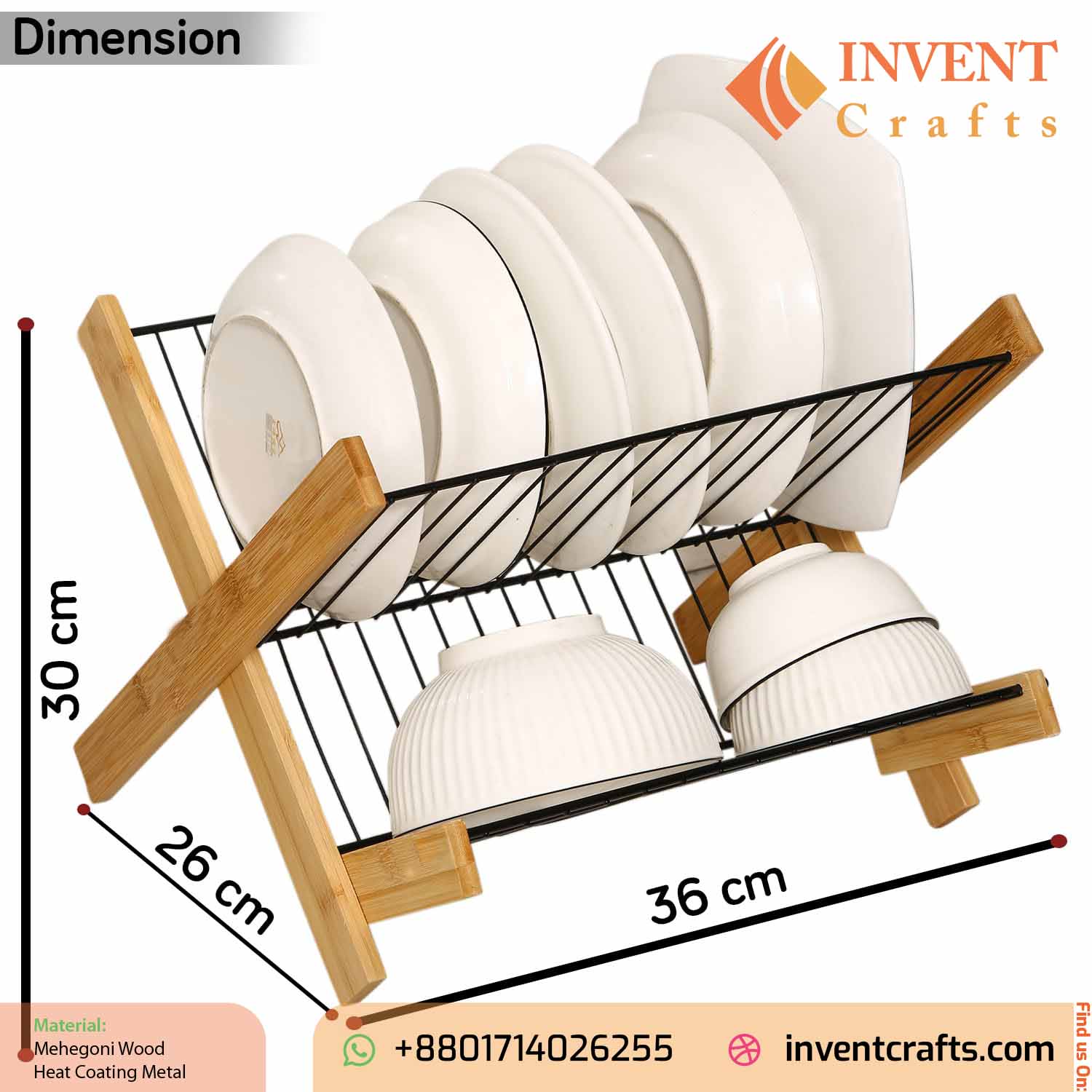 এই ড্রায়ারটি কাঠ এবং কালো মেটালের সমন্বয়ে তৈরি, যা আপনার রান্নাঘরের সৌন্দর্য বৃদ্ধি করবে। এর দুটি স্তরে আপনি থালা, বাটি, গ্লাস এবং কাপ ইত্যাদি শুকানোর জন্য রাখতে পারবেন। এটি ফোল্ডেবল হওয়ায় ব্যবহার না করার সময় ভাঁজ করে রেখে দিতে পারবেন, যা স্থান সাশ্রয় করবে।